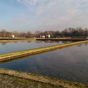 Slow sand filtration has been a reliable method of water purification in the UK for approximately 150 years, requiring no chemicals or electricity to operate. The process takes place over a large surface area, with both water treatment works having up to twelve large beds, and involves the formation of a biofilm of living organisms on top of a fine layer of sand. The sand and biolayer is submerged in water, allowing the organisms to eat potentially harmful pathogens while clean, potable water filters through the sand.