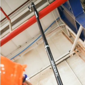 Using super-lightweight carbon-fibre poles and cleaning accessories, SpaceVac enables operators to clean up to 11 metres from ground level inside buildings, and 15 metres externally.