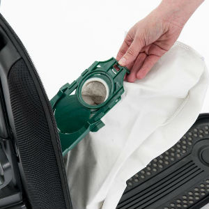 High filtration is provided by a HEPA 13 media bag. Replacing the dust bag is simple. The compartment unzips and the bag is automatically sealed as it’s pulled from the bag holder.